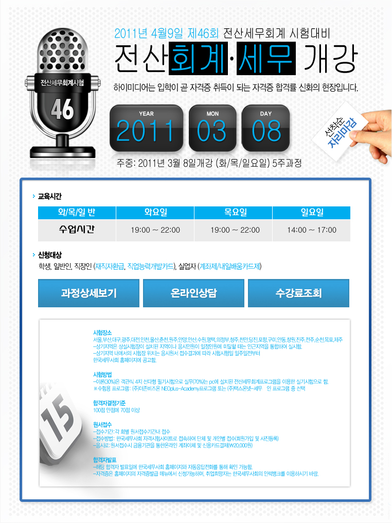[시험대비특강] 제 46회 전산세무회계 시험대비반 개강안내