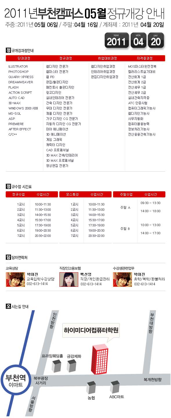 [정규개강] 2011년 05월 부천캠퍼스 개강안내