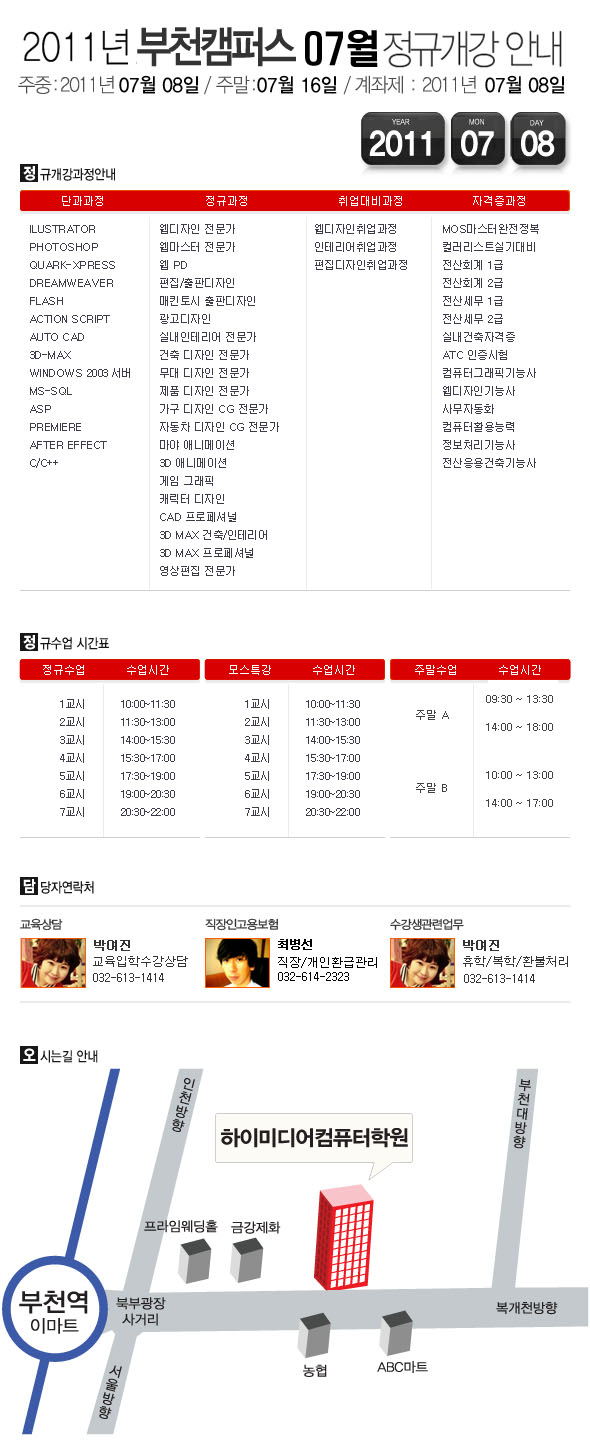 [정규개강] 2011년 07월 부천캠퍼스 개강안내