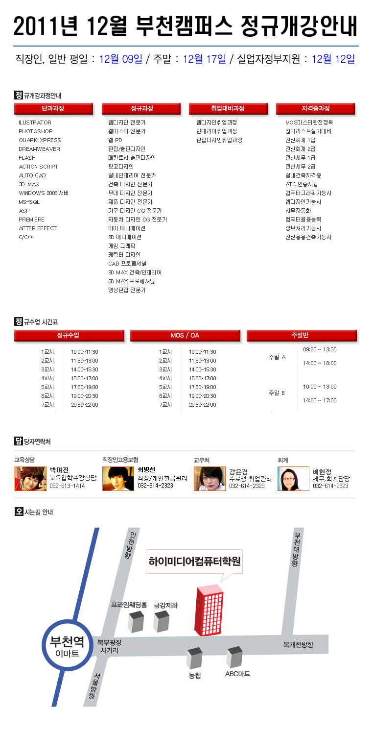 [정규개강] 2011년 12월 부천캠퍼스 개강안내
